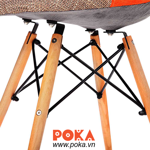 Eames chair DSW Fabric - một biểu tượng của thiết kế hiện đại ngày nay. Phần tựa lưng ghế bằng nhựa với độ cao và độ ngả hợp lí giúp hỗ trợ xương sống.Chân ghế gỗ tự nhiên và cấu trúc thép đen đan chéo giúp cân bằng trọng lượng và tạo ra nét khác biệt.