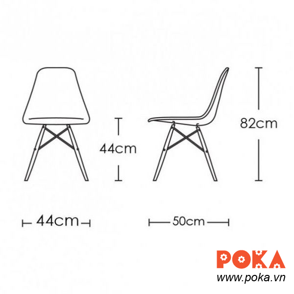 Ảnh 1: Kích thước (DxRxC) của Ghế Eames DSW: 44x50x82 cm