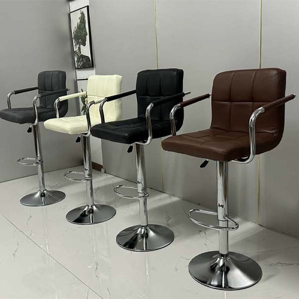 Chân ghế có chất liệu là thép chống rỉ cao cấp, chân xoay 360 độ. Có cần piston thủy lực nâng hạ được chiều cao ghế rất linh hoạt. Với tính ưu việt về thiết kế hiện đại, nhiều màu sắc kết hợp cả đệm ngồi bọc da PU, đặc biệt là giá thành rẻ tạo nên sức hút của dòng ghế này.