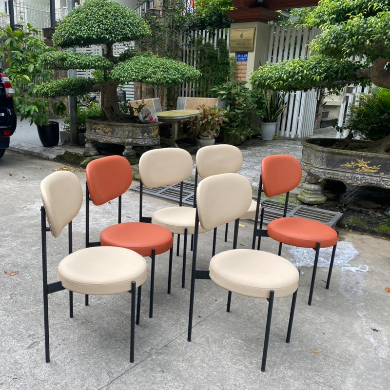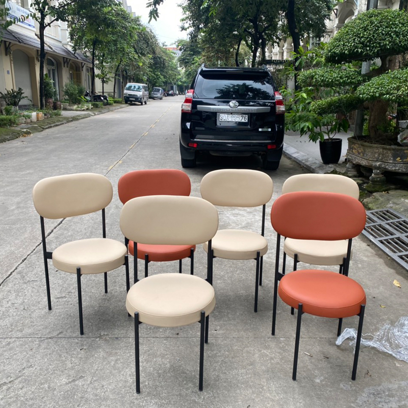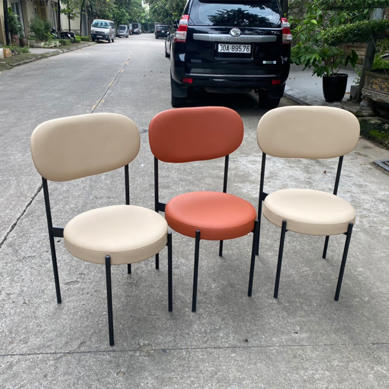 - Chất liệu: tựa và đệm bọc bằng da hoặc vải, chân sắt sơn tĩnh điện màu đen