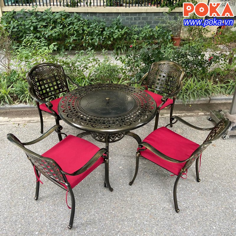 Địa chỉ mua bộ bàn ghế nhôm đúc tích hợp bếp nướng âm bàn ND03