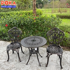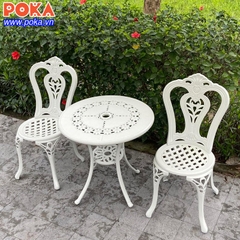 Bộ sản phẩm Bàn ghế nhôm đúc ngoài trời ND01 bao gồm: 1 bàn + 2 ghế.