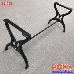 Chân bàn gang đôi CG-D33 được làm bằng gang đúc gồm 2 chân gang đơn và được nối với nhau bởi 1 thanh giằng được dùng cho mặt bàn gỗ tự nhiên nguyên tấm có kích thước lớn.