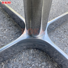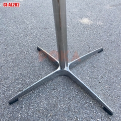 Chân bàn trụ nhôm CI-AL282 với phần chân đế bằng hợp kim nhôm đúc có kích thước rộng 47x47cm (đường chéo 67cm) trong làm tăng độ vững chắc cho chiếc bàn, phần bên trên là mặt bích hình vuông có sẵn lỗ để khoan bắt vít vào mặt bàn.