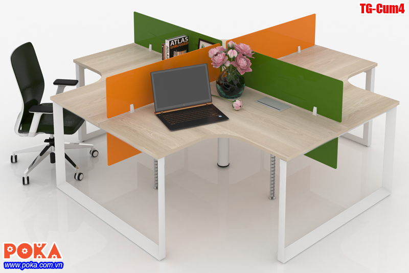 Cụm bàn nhân viên 4 chỗ ngồi sử dụng chân bàn văn phòng TG-Cum4