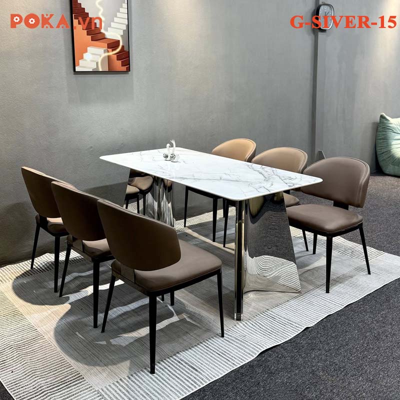 - Ghế Ăn da nhập khẩu G-SIVER-15 với thiết kế trẻ trung, được gợi ý kết hợp sử dụng với bàn ăn gia đình, bàn tiếp khách, bàn làm việc. tôn vinh không gian sống tinh tế.