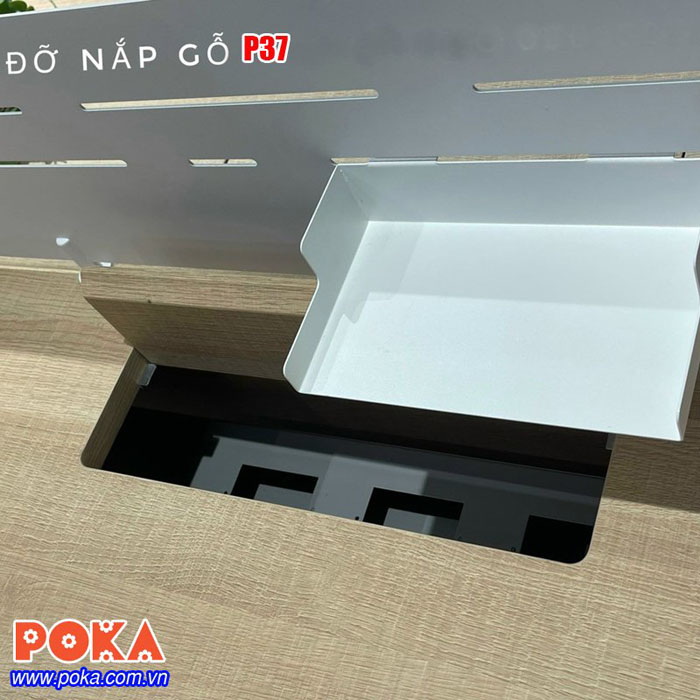 Ngoài nắp điện bằng nhôm mà Poka đang bán ra. Chúng tôi có ra đời 1 sản phẩm mới đó là Bas lật cho nắp điện gỗ P37.