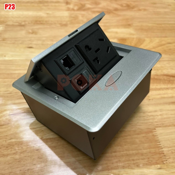 Hộp điện đa năng P23 là hộp điện âm bàn thông minh mini có kích thước hình vuông được ứng dụng trong sản xuất đồ nội thất văn phòng, bàn làm việc, bàn máy vi tính.