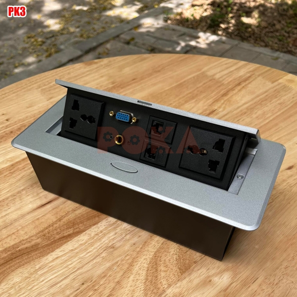Hộp điện đa năng PK3 là hộp điện âm bàn thông minh mini có kích thước hình chữ nhật được ứng dụng trong sản xuất đồ nội thất văn phòng, bàn làm việc, bàn máy vi tính.