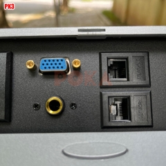 Hộp điện thông minh PK3 gồm có 1 cổng RJ45 (cổng Network). 1 cổng RJ11 (cổng Telephone), 1 cổng VGA, 1 cổng Audio 6mm và 2 cổ cắm điện 3 chấu.