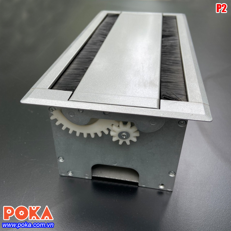 Hộp điện âm bàn P2 thiết kế với hệ bánh răng thông minh lật hai bên giảm chấn không có tiếng ồn.