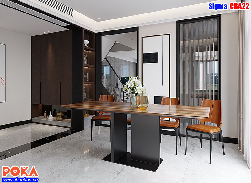 Hình 10: chân bàn ăn Eliot CBA01 kết hợp gỗ me tây rất sang trọng và hiện đại