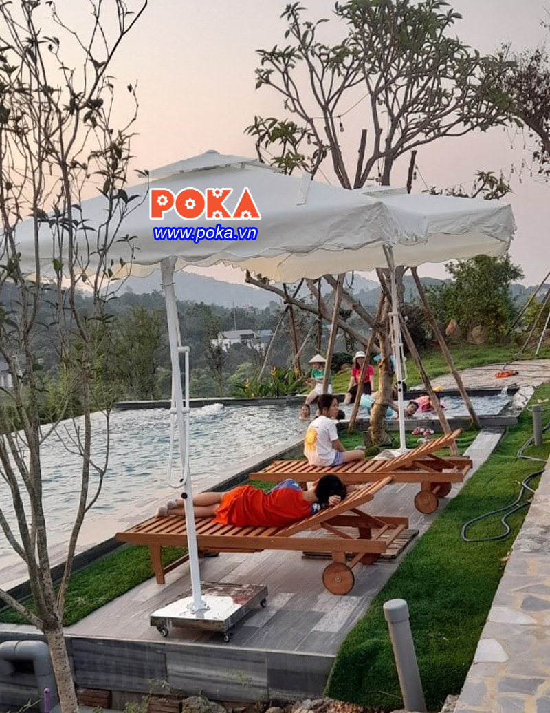 Hình 16: Bàn giao và lắp đặt ghế bể bơi kèm ô dù lệch tâm ở Chương Mỹ, Hà Nội