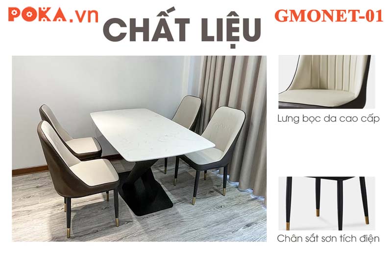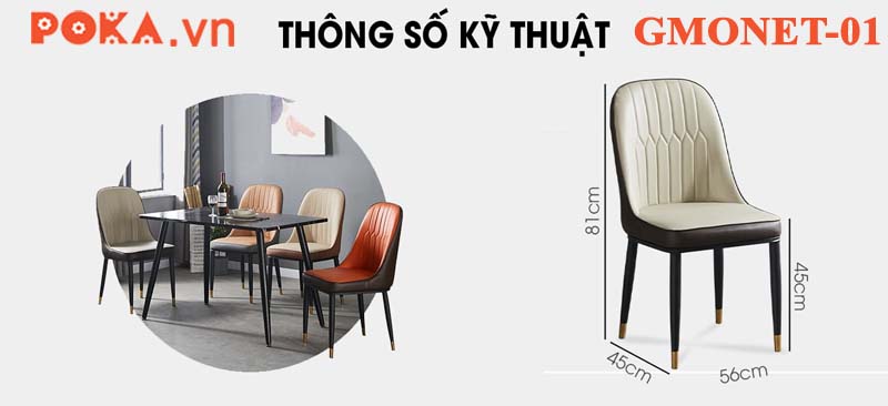 - Khung ghế: Thép chống rỉ, được sơn tĩnh điện. Chân ghế có núm bọc mạ vàng đồng