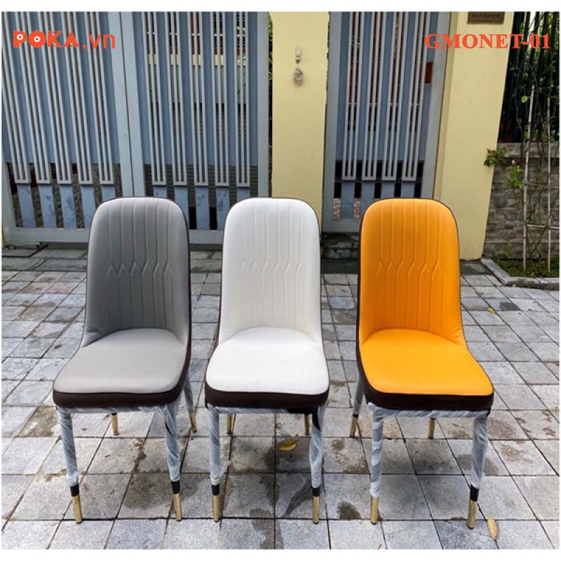 Ghế Ăn Monet Không Tay Nhập Khẩu có nhiều màu sắc khác nhau: cam, xám và kem, ghi, trắng, nâu.. Các màu sắc này được thiết kế để phù hợp với nhiều không gian khác nhau, từ phòng khách tới văn phòng làm việc.