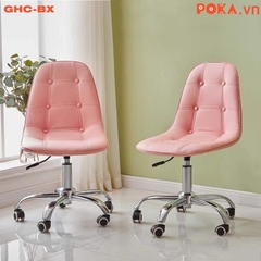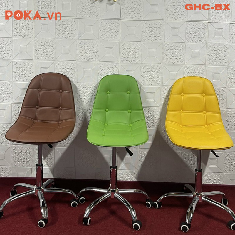 Ghế đệm da cúc chân xoay GHC-BX nhìn vô cùng đơn giản và nhẹ nhàng, thanh thoát. Chân ghế có độ cong bao nhiêu, kiểu dáng. Kích thước như thế nào tất cả đều dễ dàng thực hiện khi ứng dụng công nghệ uốn cong tấm ván ép. Phần tay vịn gắn liền với chân ghế được tạo dáng đặc biệt. Và được tính toán kỹ càng về khả năng chịu lực. Nhờ đó mà bạn dễ dàng có được chiếc chân ghế cong theo ý muốn và sở thích của mình.