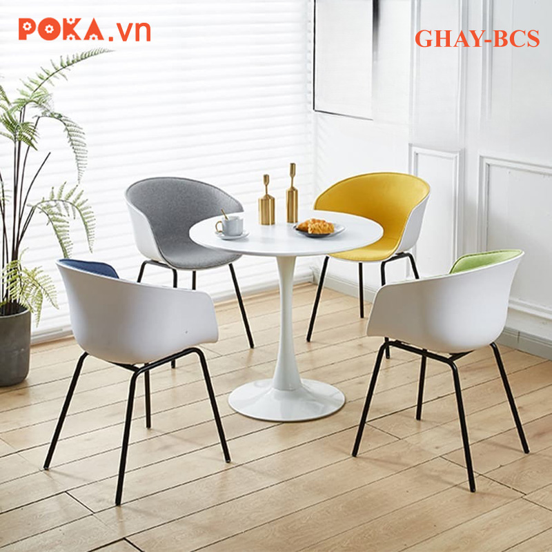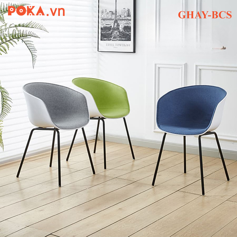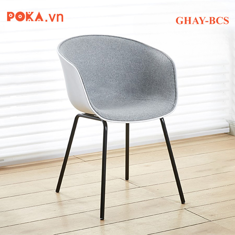 Phong cách hiện đại: Ghế GHAY-BCS sở hữu thiết kế hiện đại, với đường cong mềm mại ở phần lưng và tay vịn, tạo cảm giác thoải mái và hài hòa. Sự kết hợp giữa chân sắt thanh mảnh và phần lưng nhựa PP uốn cong tinh tế giúp chiếc ghế trông thanh lịch, gọn gàng nhưng vẫn chắc chắn.