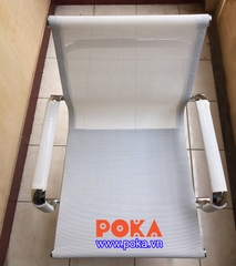 - Phần để tay của ghế làm bằng thép cường lực mạ Chrome, phủ lưới màu đen hoặc trắng đồng bộ với tổng thể của ghế có khóa kéo dễ dàng vệ sinh.