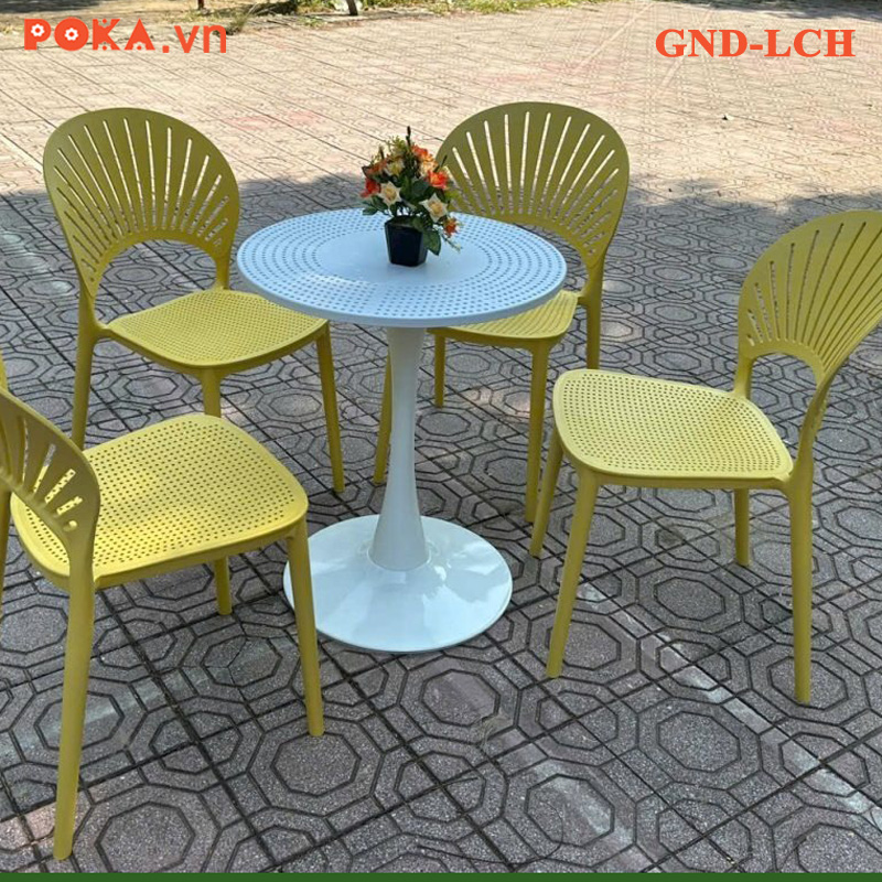 Ghế Nhựa Đúc lưng cánh hoa GND-LCH Nhập Khẩu đây là dòng ghế nhựa đúc nguyên khối. Có thiết kế đẹp sang trọng đặc biệt có nhiều màu như: Đen, đỏ, xanh, vàng, cam, nâu… Ghế ứng dụng là ghế ăn, ghế cafe, ghế trà sữa… Có độ bền cao là loại ghế đẹp, mới xuất hiện trên thị trường một vài năm trở lại đây. Kiểu dáng thanh mảnh, nhẹ nhàng, dễ di chuyển, xếp chồng lên nhau. Đặc biệt có thể sử dụng được cả trong nhà lẫn ngoài trời