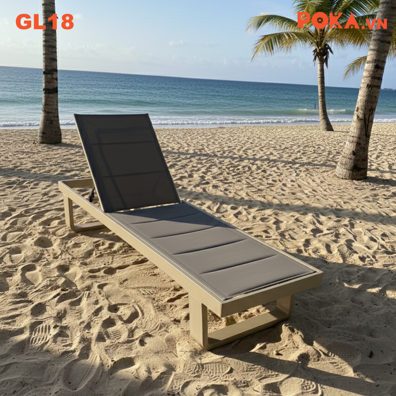 Ghế tắm nắng nhôm lưới Textilene GL18 cho các khu du lịch, bãi biển, bể bơi, sân vườn và các khu nghỉ dưỡng, resort...