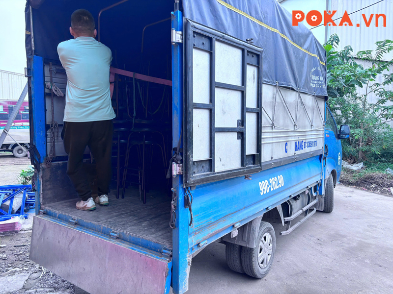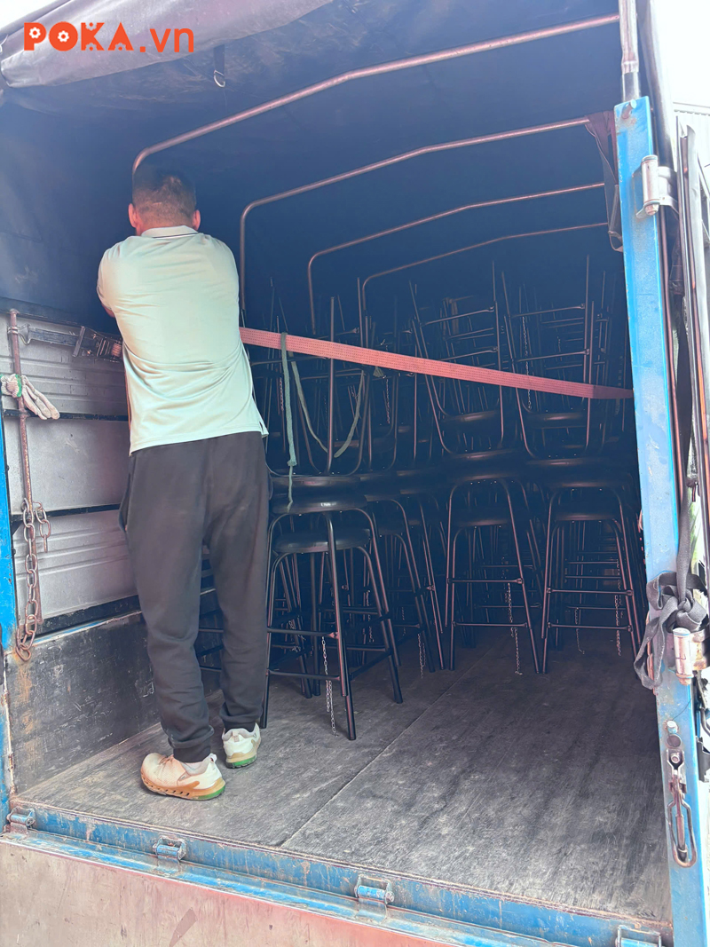 Hình 3: Toàn bộ ghế chống tĩnh điện chân sắt cao 60cm đã được bốc lên xe và chằng buộc cẩn thận giao tới công ty điện tử ở Hưng Yên