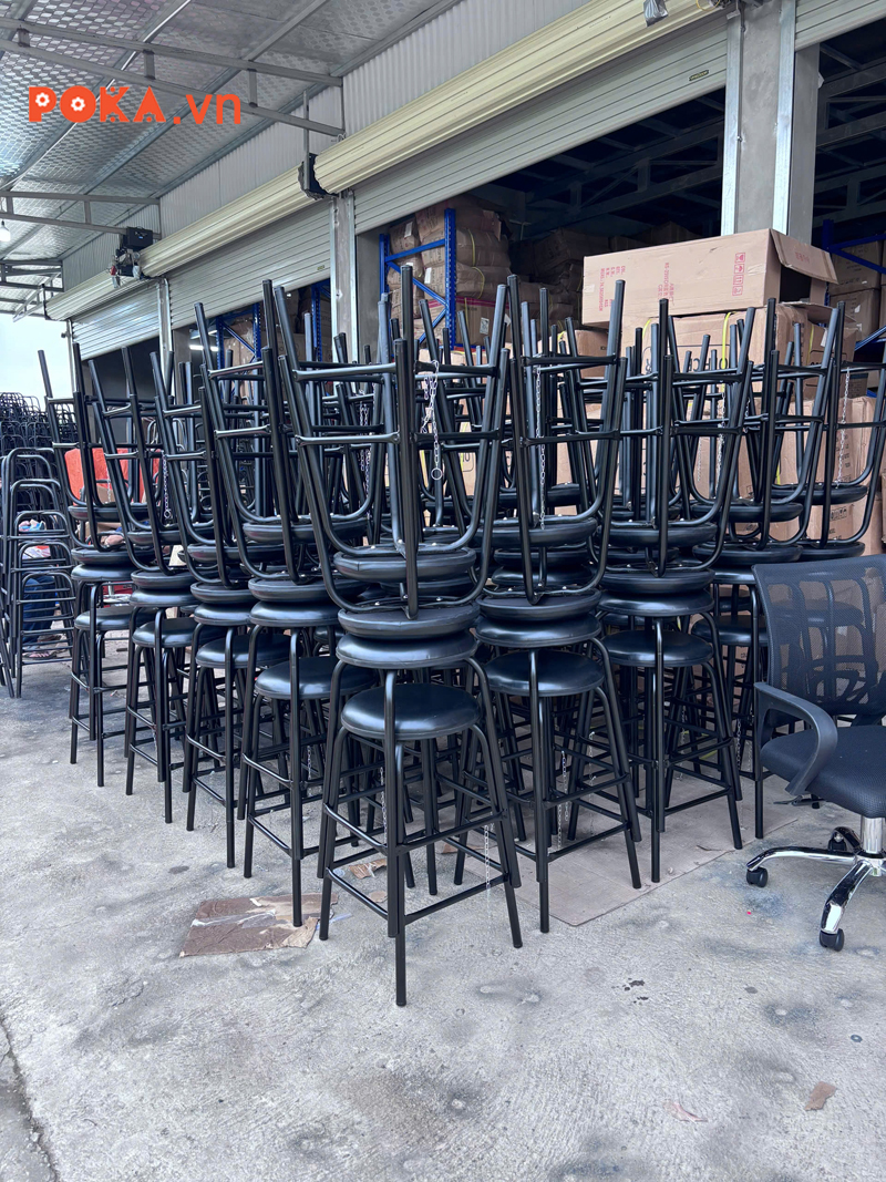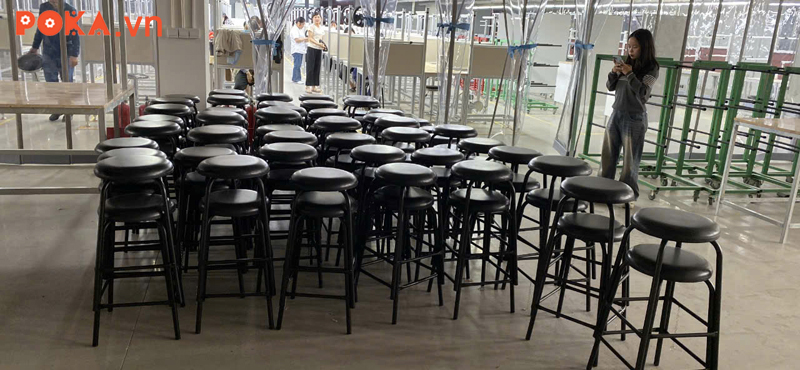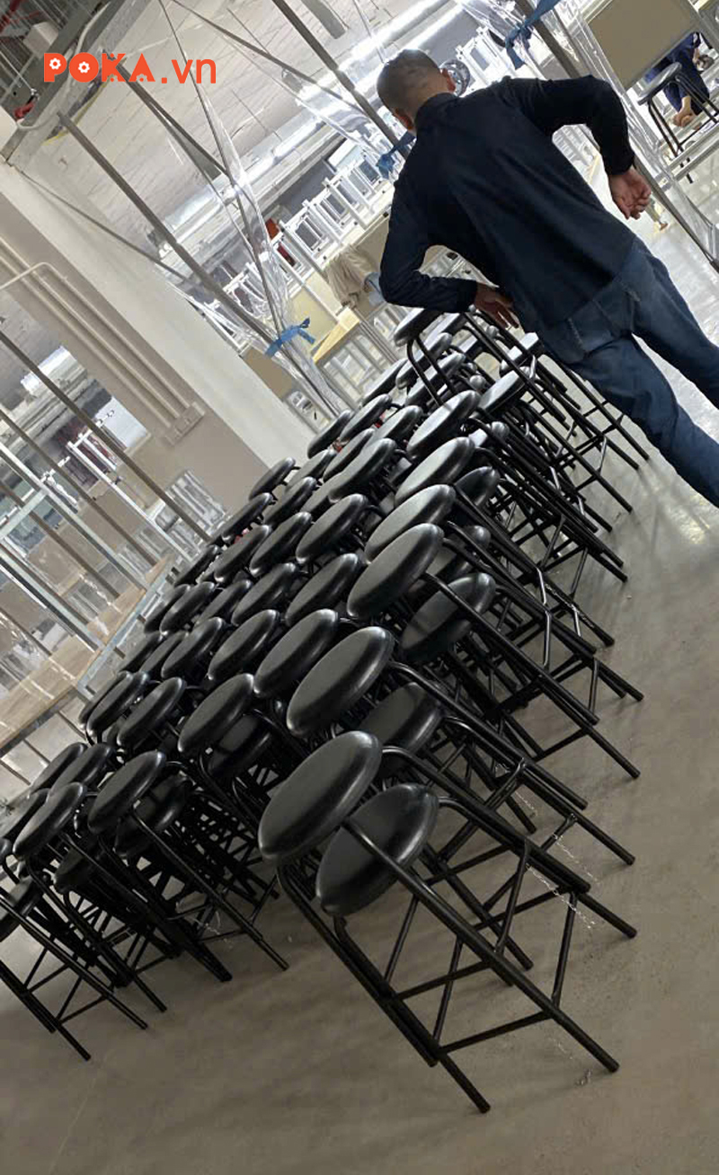 Hình 4: Ghế chống tĩnh điện chân sắt cố định mặt đệm cao 60cm đã được hạ xuống xe và bàn giao cho khách hàng tại Hưng Yên