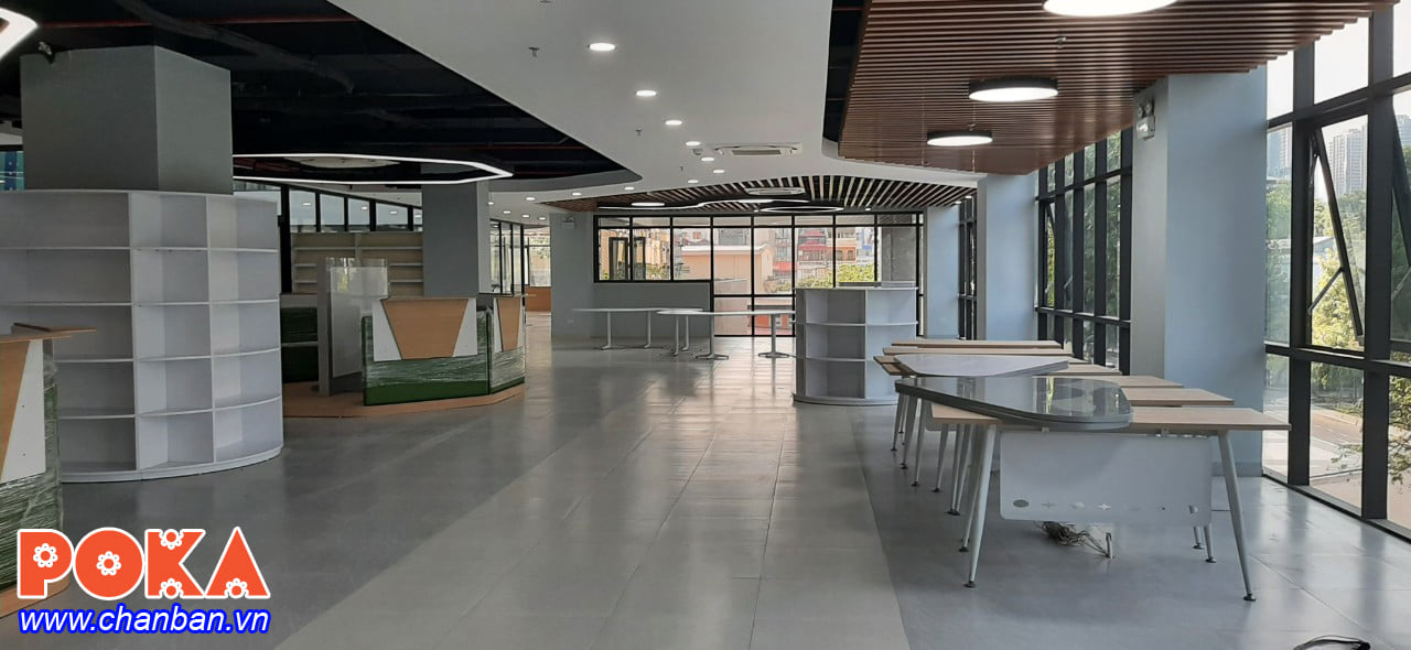 Sau khi nhận được bản thiết kế cũng như tiến độ hoàn thành trong vòng 1 tháng phải hoàn thành nghiệm thu, Chúng tôi đội ngũ kỹ sư chân bàn Poka đã tiến hành lên khảo sát thực tế tại công trình, đo đạc mặt bằng thực tế. Từ bảng thiết kế, Chúng tôi đưa ra những giải pháp lắp ghép chân, gia cố kết cấu, chịu lực chân bàn. Sau khi đi đã thống nhất các phương án với các kỹ sư và bên tư vấn giám sát, đội ngũ công nhân lành nghề tại xưởng cơ khí chân bàn Poka sản xuất mẫu để trình duyệt. Đây là một công trình dự án lớn vì vậy Poka quán triệt với toàn bộ đội ngũ công nhân viên phương châm tiến độ, thần tốc, chất lượng và Chúng Tôi đã hoàn thành sản xuất trong vòng 1 tháng. Tuy nhiên dịch COVID ập đến đúng ngày bàn giao công trình, theo chỉ thị 17/CT-UBND ngày 23/07/2021 của Uỷ Ban nhân dân thành phố Hà Nội về việc phòng chống Covid-19 giãn cách toàn xã hội, tất cả các công trình xây dựng đều bị tạm hoãn 15-20 ngày. Vậy là Poka không thể lên lắp đặt bàn giao đúng tiến độ. Ngay sau khi hết lệnh giãn cách xã hôi, Toàn bộ đội ngũ kỹ sư, nhân viên kỹ thuật được điều động lên công trình thi công và lắp đặt trong thời gian nhanh nhất. Và ngày hôm nay, Chân bàn Poka rất tự hào góp một phần nhỏ bé vào vẻ đẹp của một trung tâm học liệu của một trường Đại Học Thương Mại đẹp nhất Hà Nội.