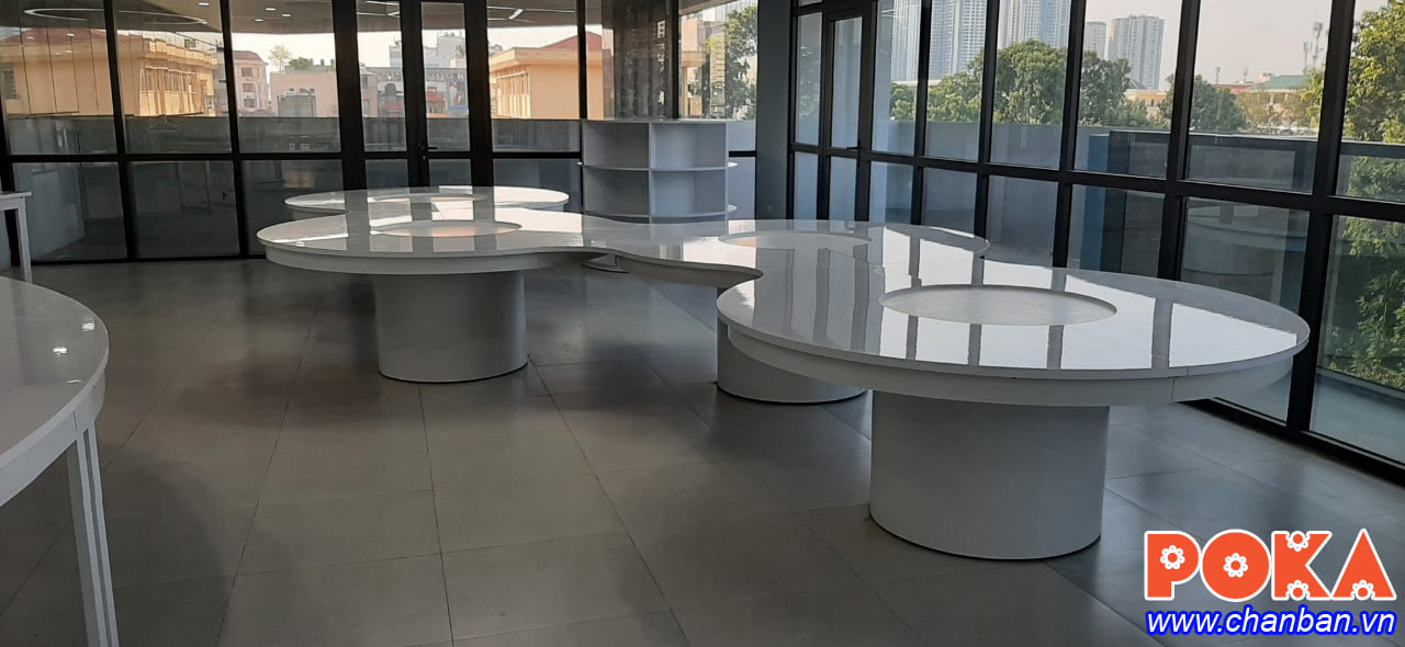 Khu vực tầng 3 sử dụng chân bàn Louis, đây là chân bàn hiện đại vừa có thể làm chân bàn văn phòng hoặc chân bàn ăn, hệ chân bàn này kết hợp với yếm được cắt laser tạo hình đẹp mắt nhưng vẫn kín đáo