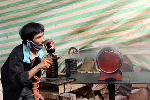 Ảnh 7: Phun sơn cho trống đựng rượu vang