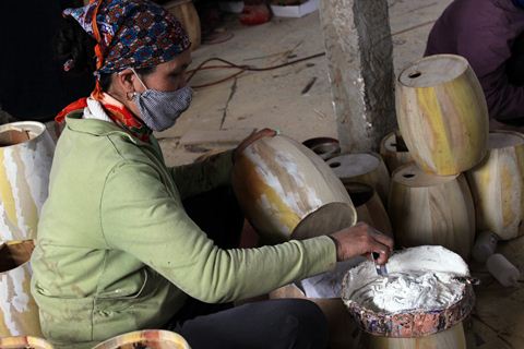 Hỏi ra mới biết: “Làng đã “chuyển đổi cơ cấu” từ một nghề làm trống sang đa dạng các mặt hàng, miễn sao kiếm ra tiền” - bác Mạnh một lao động làm nghề trong làng cho biết.