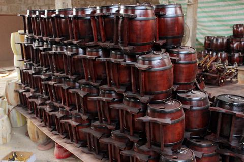 Tới 4 xưởng sản xuất trống lớn ở Đọi Tam, đều thấy các mặt hàng ở đây khá đa dạng: trống lễ hội, bồn tắm tới bom đựng rượu vang.