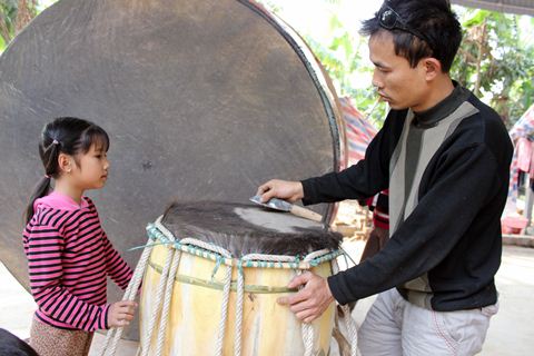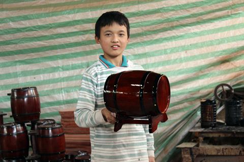 Ảnh 12: Cho đến nay, nghệ nhân Khanh vẫn duy nhất giữ một nghề làm trống và nó vẫn tiếp tục được truyền nối tới đời con, cháu.