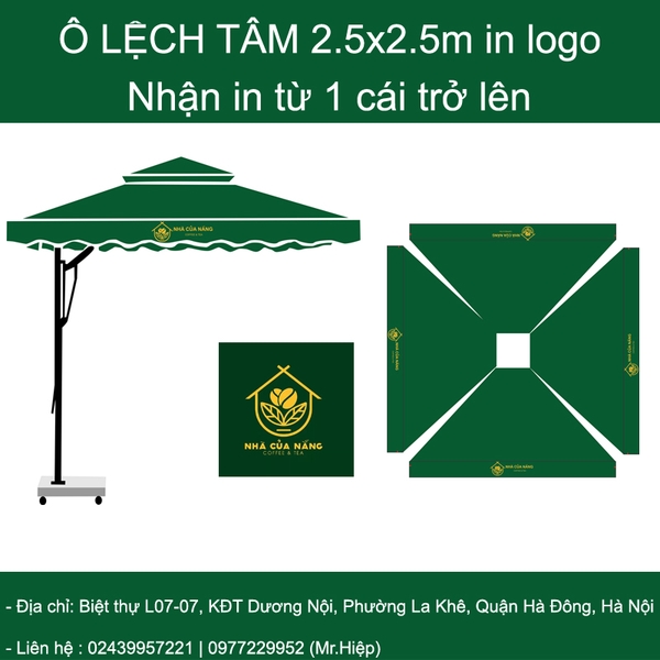 Báo giá dù lệch tâm in logo, Dù cà phê in logo giá rẻ, Ô dù quán cà phê chất lượng cao, Địa chỉ cung cấp dù cà phê sỉ, Xưởng dù cà phê in logo Hà Nội