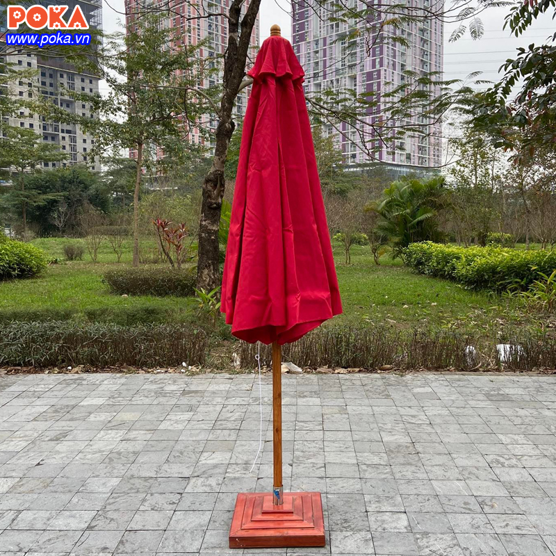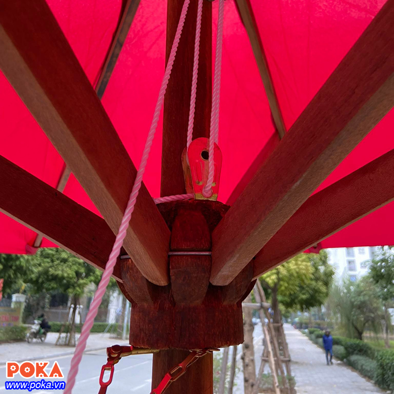 Ảnh 1: Ô dù chính tâm cán gỗ 3m sử dụng ròng rọc để căng lên hoặc thu tán ô xuống