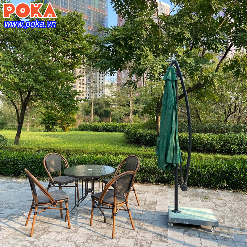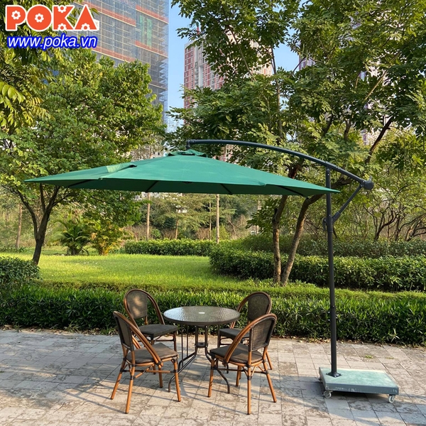 POKA chuyên sản xuất và phân phối bán sỉ và lẻ sản phẩm Ô dù cà phê lệch tâm tròn. Ô dù lệch tâm che nắng mưa và trang trí cho Quán Cafe, nhà hàng, khách sạn, sân golf, Resort, bể bơi, trường học...