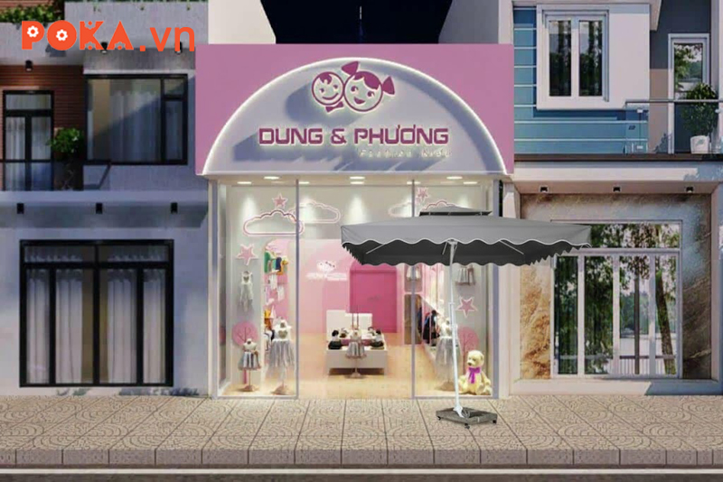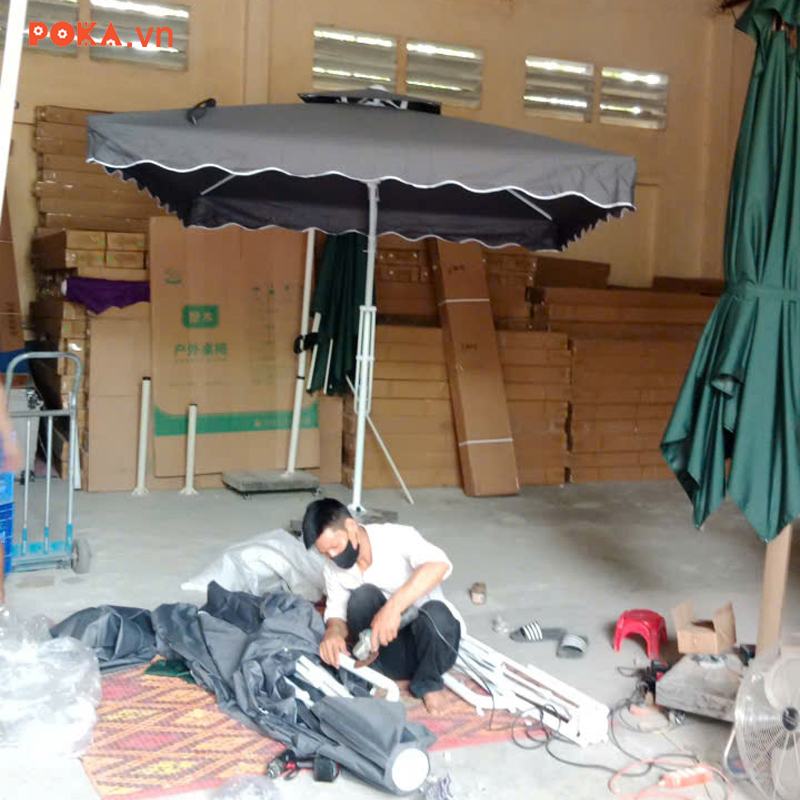 Ảnh 3: Một số hình ảnh chi tiết của Ô dù lệch tâm vuông màu màu ghi xám được lên 3d cùng các kiến trúc sư vào cửa hàng mẹ và bé