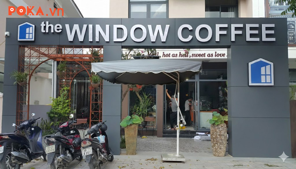 Quán Cafe của bạn sẽ nổi bật hơn khi được trang trí bằng những chiếc ô dù lệch tâm vuông nghệ thuật và bộ bàn ghế cafe.