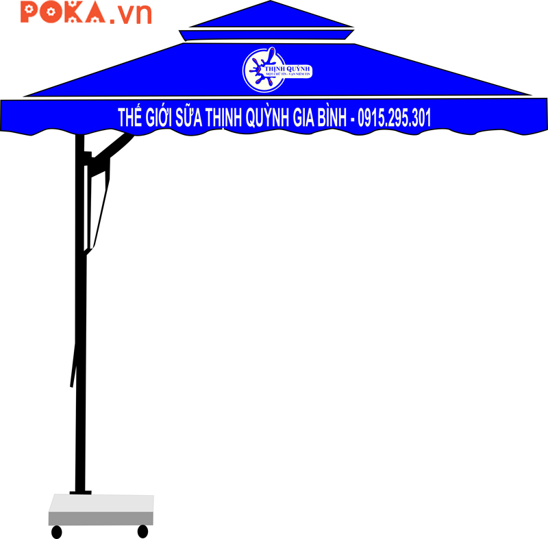 POKA chuyên sản xuất và phân phối bán sỉ và lẻ sản phẩm Ô dù lệch tâm vuông 2m5x2m5 màu xanh nước biển. Ô lệch tâm vuông che nắng mưa và trang trí cho Quán Cafe, nhà hàng, khách sạn, sân golf, Resort, bể bơi, trường học...