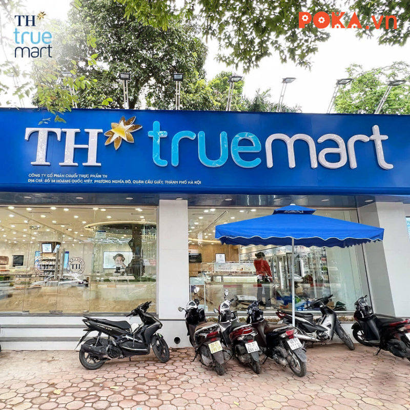 Ảnh 1: Ô lệch tâm vuông 2.5x2.5m màu xanh nước biển tại cửa hàng giới thiệu sữa TH TRUE MILK