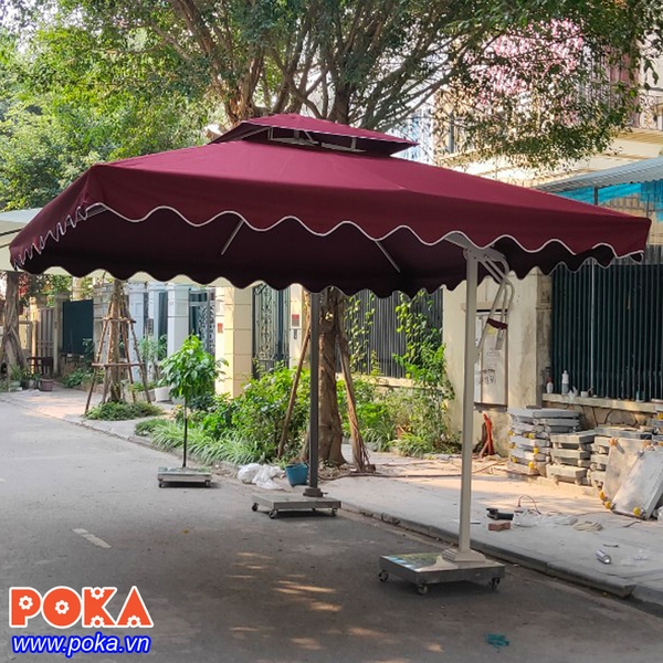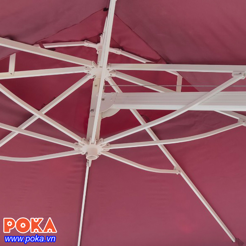- Ô dù lệch tâm vuông có tay đòn bẩy điều chỉnh độ mở rộng của ô.