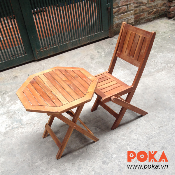 Bàn ghế gỗ cafe ngoài trời có thể gấp lại gọn gàng. Bàn gỗ cafe loại nhỏ có 3 kiểu: hình vuông, hình chữ nhật, hình bát giác.