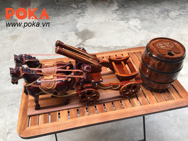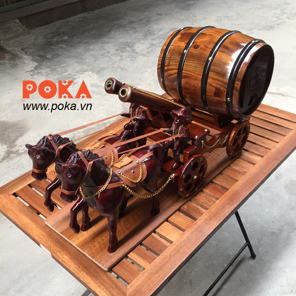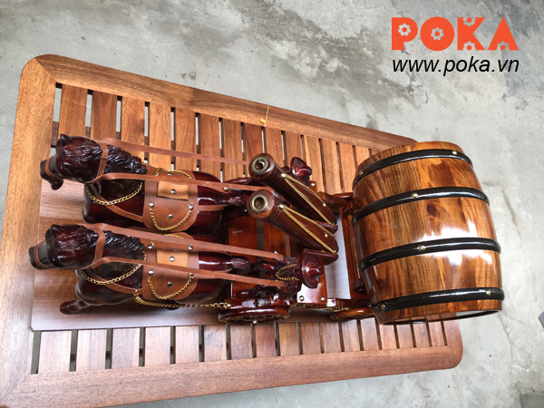 - Chất liệu: Ngựa được làm từ thạch cao+ composite, trống rượu được làm từ gỗ mít.